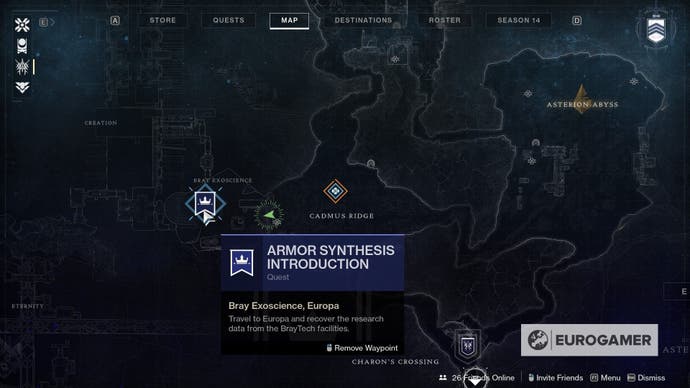 Mulailah dengan mengunjungi Banshee-44, yang terletak tepat di jalan ke Bazaar jika Anda mendarat di halaman menara. Dia akan memberi Anda ‘Armor Sintesis Pendahuluan’ Questline. Menerimanya dan mari kita bergerak. Sapa ADA-1 di basis baru (dan tampak keren), dan dia akan menugasi Anda dengan mengambil data penelitian dari permukaan Europa.